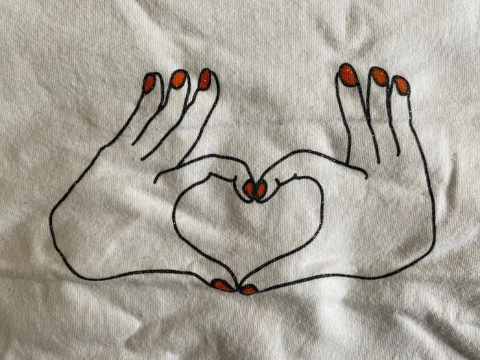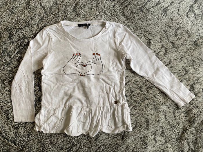 Tee-shirt manches longues blanc avec motifs doigts formant un coeur ♥️ , de la marque IKKS, en bon état - etiqueté 4 ans mais taille grand #cath_moi4ansfille #cath_moi5ansfille D'autres modèles et marques disponibles pour garçon du prématuré au 10 ans et pour fille du naissance au 6 ans dont Timberland, Bout'chou, Zara, Jacadi, Tape à l'œil, Okaidi, DKNY, Monoprix …