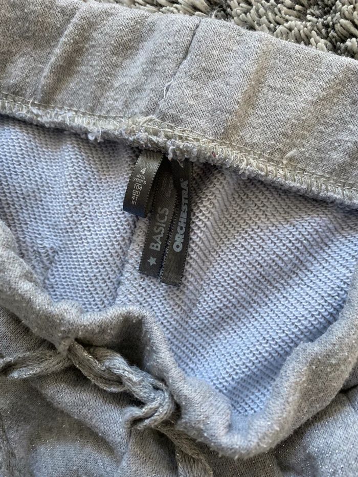 Pantalon style jogging gris avec brillants, pas mal porté d’où le prix de vente, de la marque Orchestra - taille 4 ans #cath_moi4ansfille D'autres chaussures et vêtements disponibles pour garçon du prématuré au 10 ans et pour fille du naissance au 6 ans dont Timberland, Bout'chou, Zara, Jacadi, Tape à l'œil, Okaidi, DKNY, Monoprix…