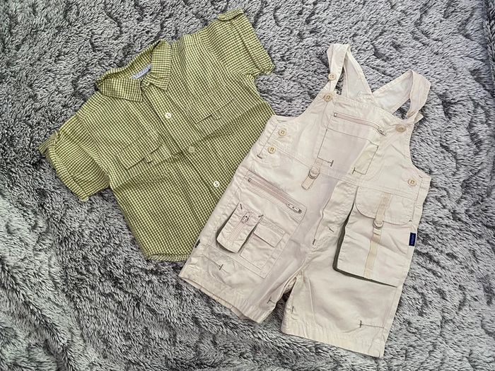 Ensemble composé d’une chemise manche courte et d’une salopette short , de la marque Natalys, en très bon état (porté une fois) - taille 6 mois #cath_moi6moisgarçon D'autres modèles et marques disponibles pour garçon du prématuré au 10 ans et pour fille du naissance au 6 ans dont Timberland, Bout'chou, Zara, Jacadi, Tape à l'œil, Okaidi, DKNY, Monoprix…