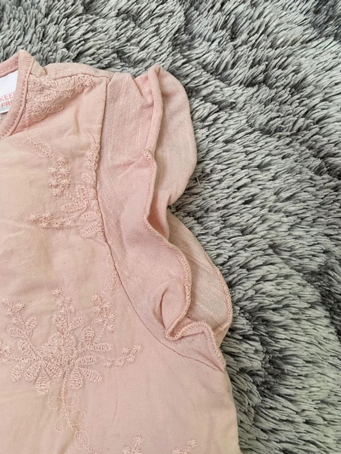Jolie petit tee-shirt style débardeur, couleur rose pâle, avec broderies sur le devant, manches avec volants, de la marque Zara, en bon état - taille 18/24 mois #cath_moi18moisfille #cath_moi24moisfille D'autres modèles et marques disponibles pour garçon du prématuré au 10 ans et pour fille du naissance au 6 ans dont Timberland, Bout'chou, Zara, Jacadi, Tape à l'œil, Okaidi, DKNY, Monoprix...