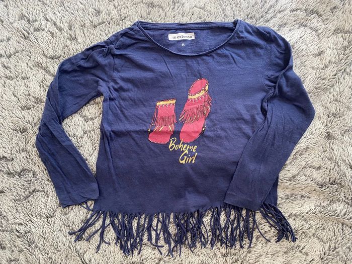 Tee-shirt manches longues bleu, marque In extenso, en très bon état - taille 6 ans #cath_moi6ansfille D'autres modèles et marques disponibles pour garçon du prématuré au 10 ans et pour fille du naissance au 6 ans dont Timberland, Bout'chou, Zara, Jacadi, Tape à l'œil, Ok
