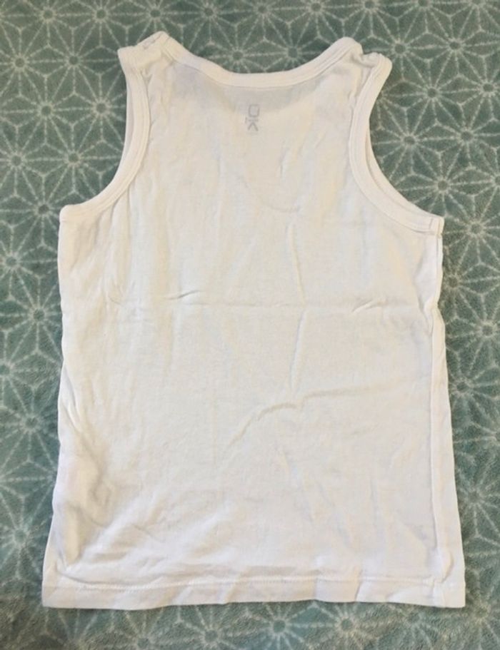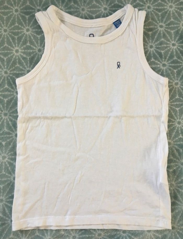 Tee-shirt sans manches style Marcel Okaidi blanc, parfait état (porté une fois pour le spectacle de fin d’année) - taille 6 ans #cath_moi6ansgarçon D'autres modèles et marques disponibles pour garçon du prématuré au 10 ans et pour fille du naissance au 5 ans dont Timberland, Bout'chou, Zara, Jacadi, Tape à l'œil, Okaidi, DKNY, Monoprix....