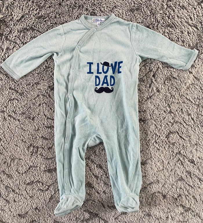 Pyjamas 1 pièce de la marque Kitchoun motifs sur le devant « I LOVE DAD » , en très bon état #cath_moi12moisgarçon D'autres modèles et marques disponibles pour garçon du prématuré au 8 ans et pour fille du naissance au 4 ans dont Timberland, Bout'chou, Zara, Jacadi, Tape à l'œil, Okaidi, DKNY, Monoprix....