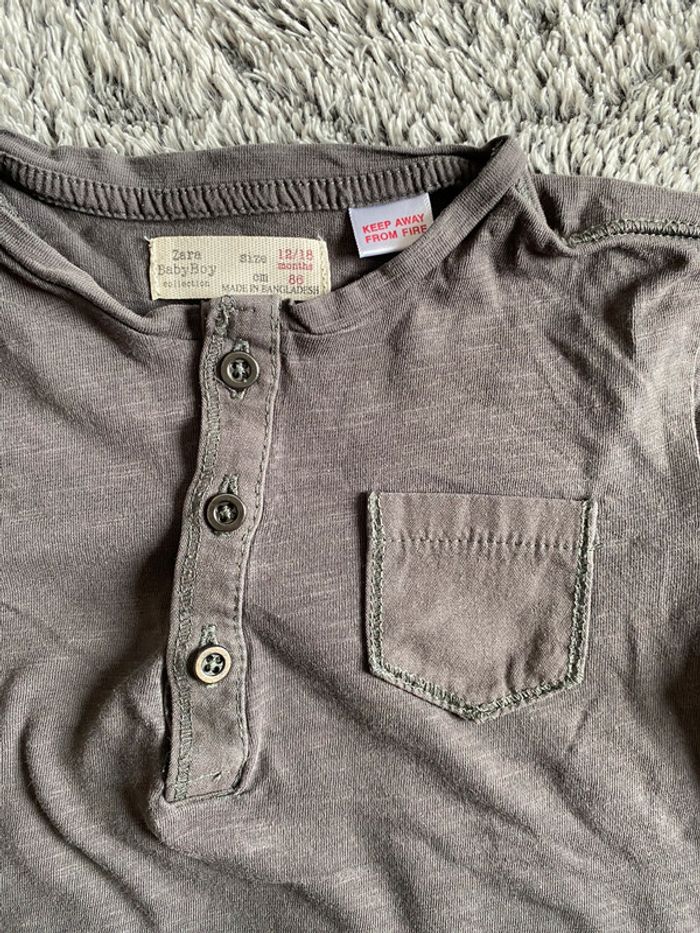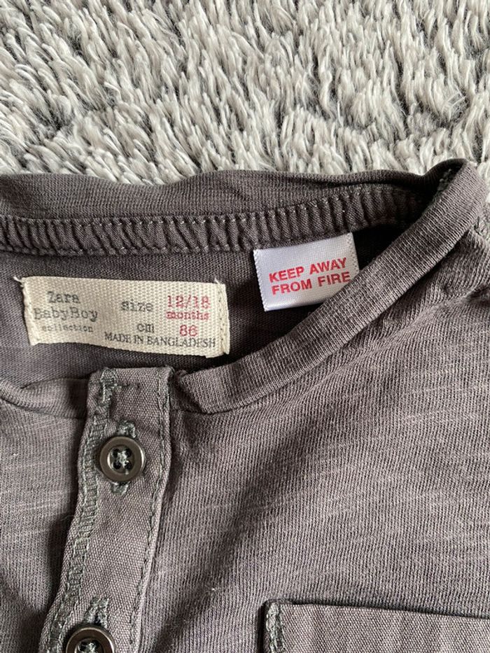 Teeshirt manches longues gris Zara - taille 12 / 18 mois - photo numéro 3