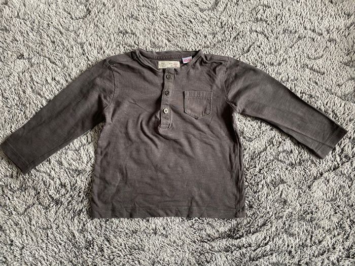Teeshirt manches longues gris Zara - taille 12 / 18 mois - photo numéro 1