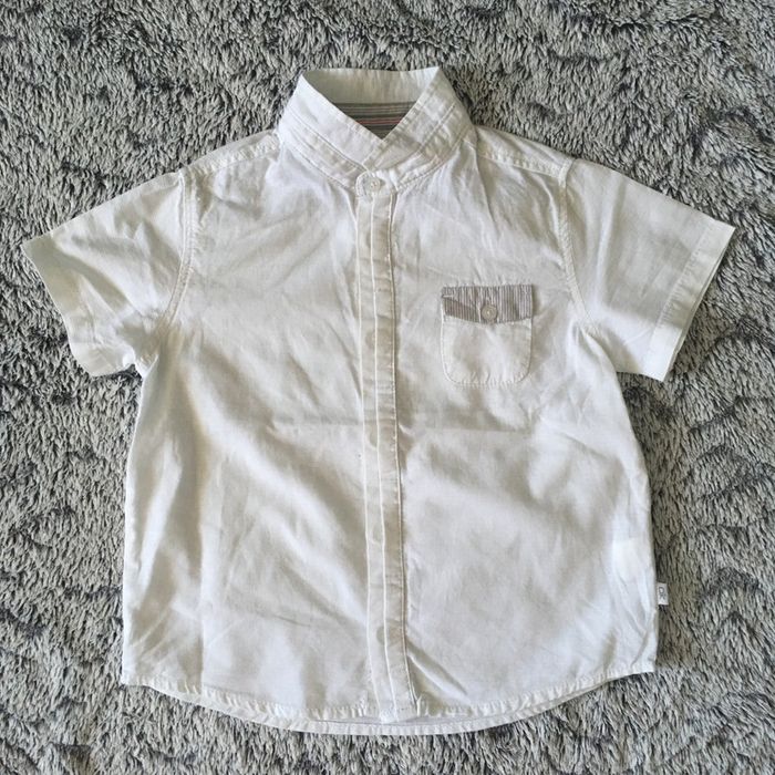 Chemise manches courtes blanche Okaïdi peu portée, col Mao, idéale cérémonie #cath_moi36moisgarçon D'autres modèles et marques disponibles pour garçon du prématuré au 8 ans et pour fille du naissance au 36 mois dont Timberland, Bout'chou, Zara, Jacadi, Tape à l'œil, Okaidi, DKNY, Monoprix....