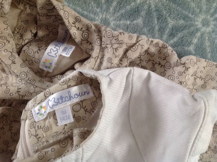 Ensemble Kitchoun avec sous pull et robe (sous pull en 3 mois et robe en 1 mois) #cath_moi1moisfille D'autres modèles et marques disponibles pour garçon du prématuré au 8 ans et pour fille du naissance au 36 mois dont Timberland, Bout'chou, Zara, Jacadi, Tape à l'œil, Okaidi, DKNY, Monoprix....