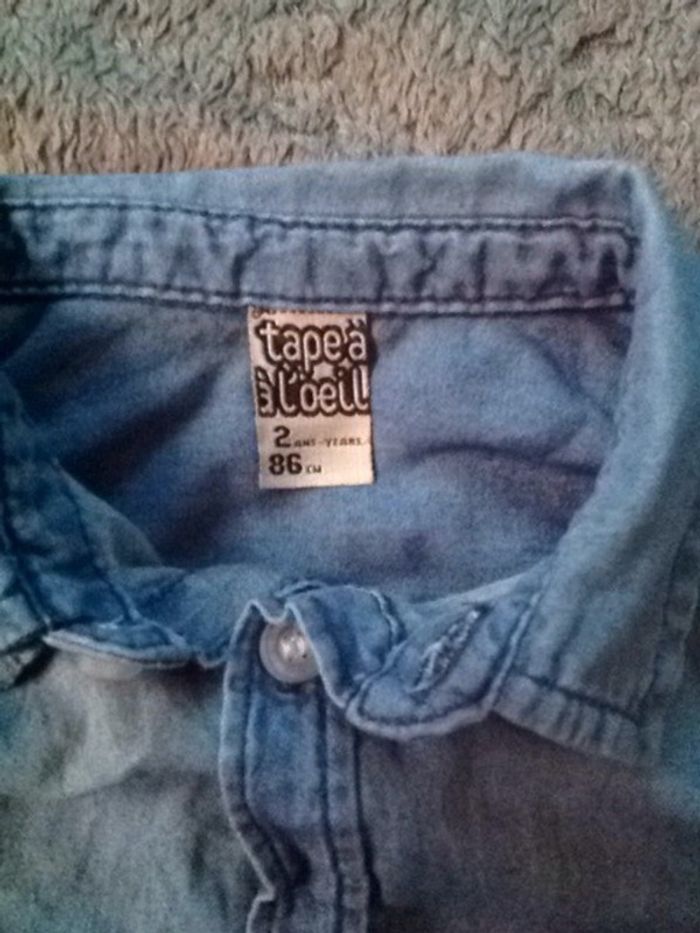 Chemise en jeans tape à l'oeil en très bon état, manches retroussables - taille 2 ans #cath_moi24moisgarçon D'autres modèles et marques disponibles pour garçon du prématuré au 8 ans et pour fille du naissance au 36 mois dont Timberland, Bout'chou, Zara, Jacadi, Tape à l'œil, Okaidi, DKNY, Monoprix....