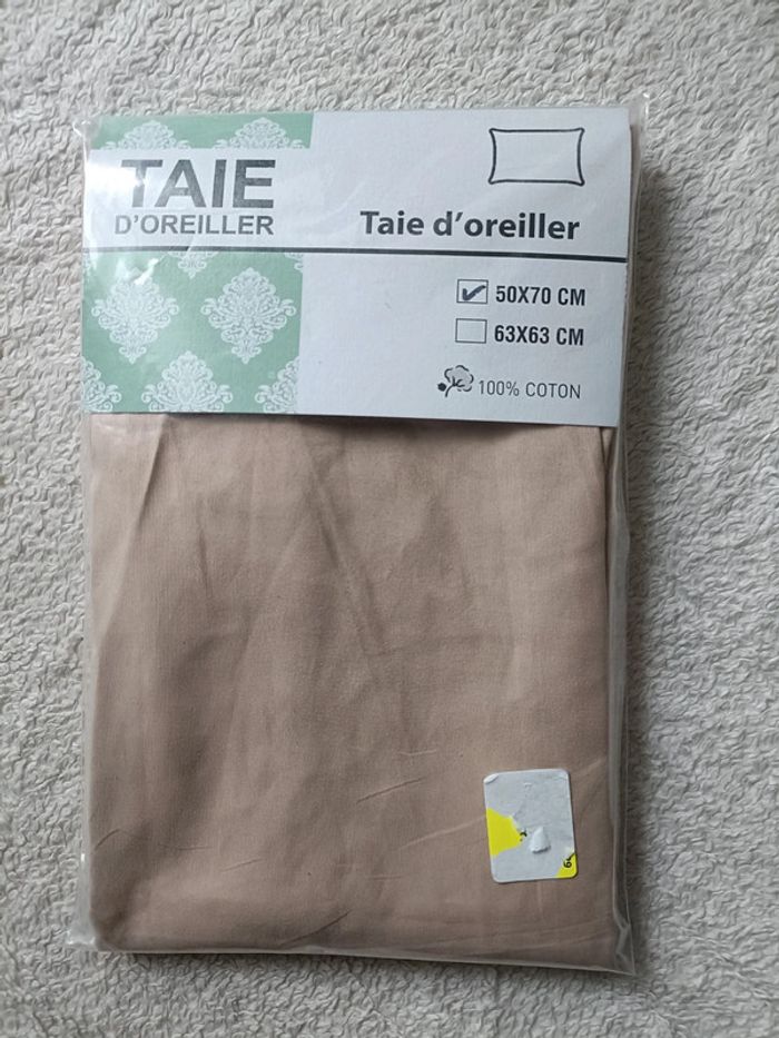 1 taie d'oreiller beige d'environ 50 X 70 cm