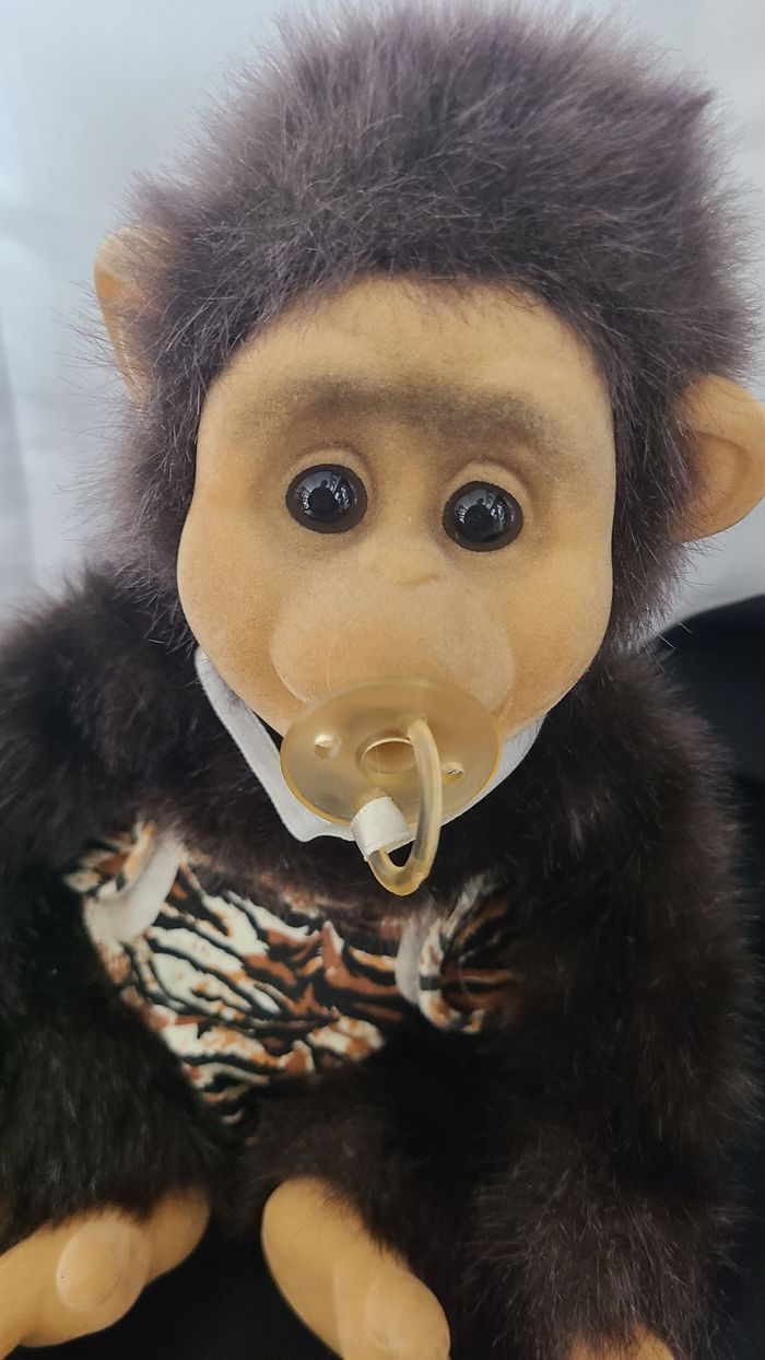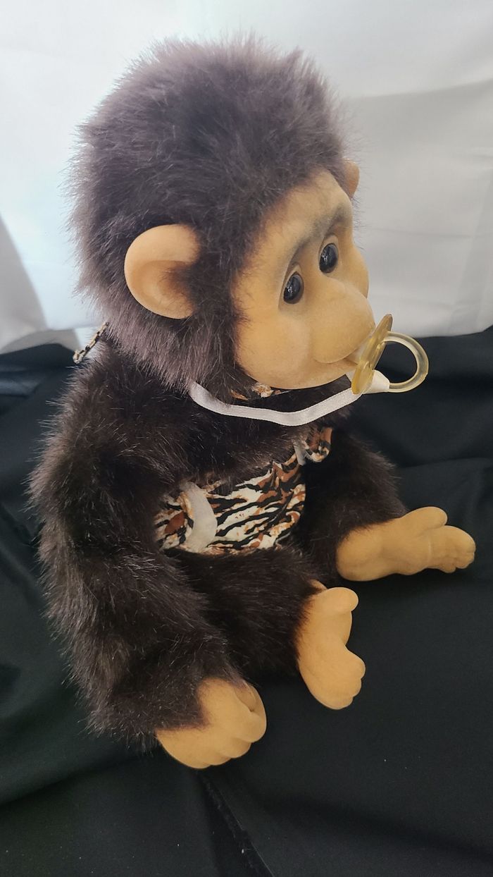PELUCHE VINTAGE CHIMPAN AVEC TÉTINE ET COUCHE - photo numéro 6