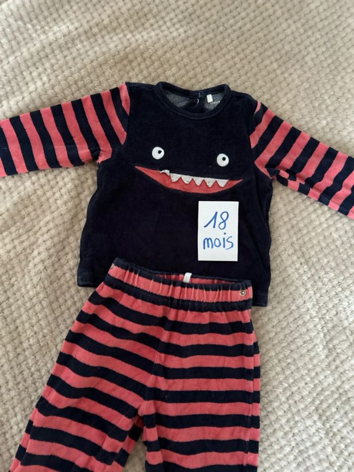 Pyjama deux pièces rouge et noir/bleu foncé #tatouwbebegarcon18mois