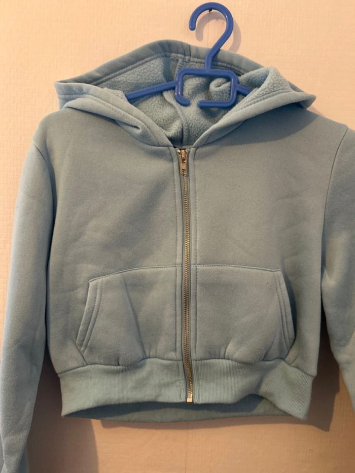 Veste bleu clair courte à capuche #tatouwfemme34