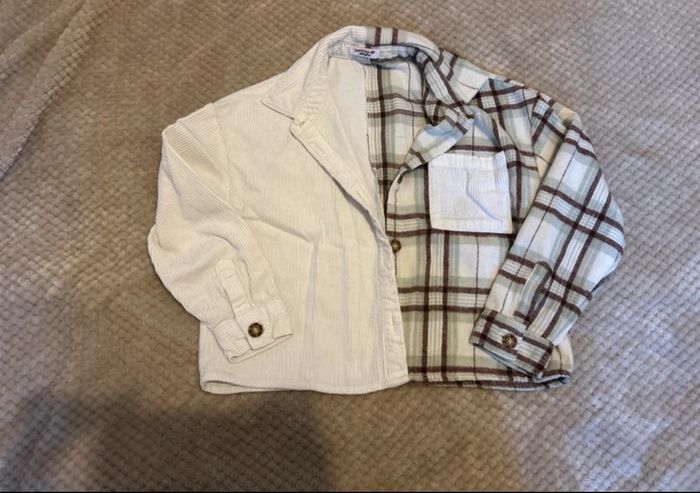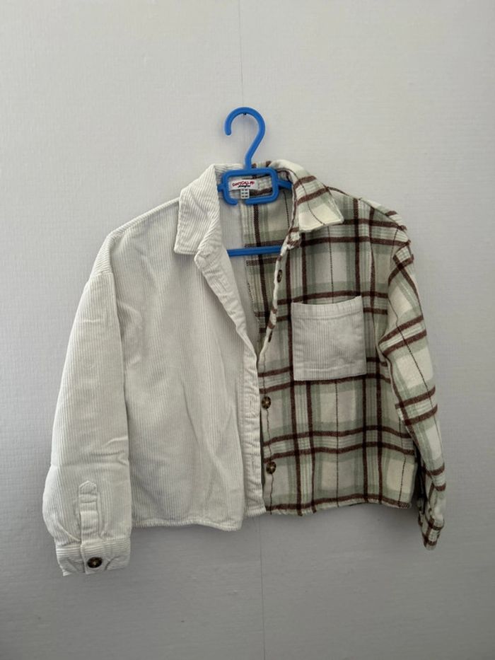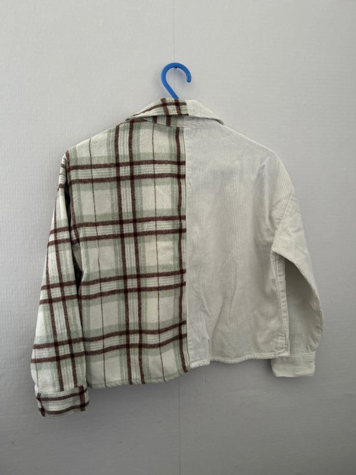 Sur chemise ou veste à carreaux Bicolore Un côté blanc crème côtelé et un autre carreaux vert menthe #tatouwfemme32