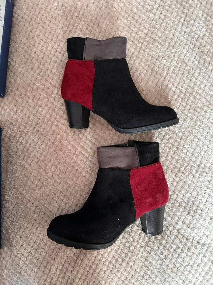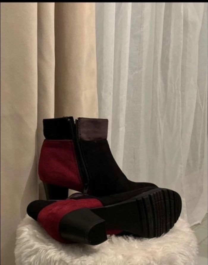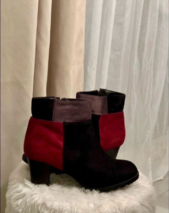 Bottines à talons noir crème bordeaux style patchwork taille 36