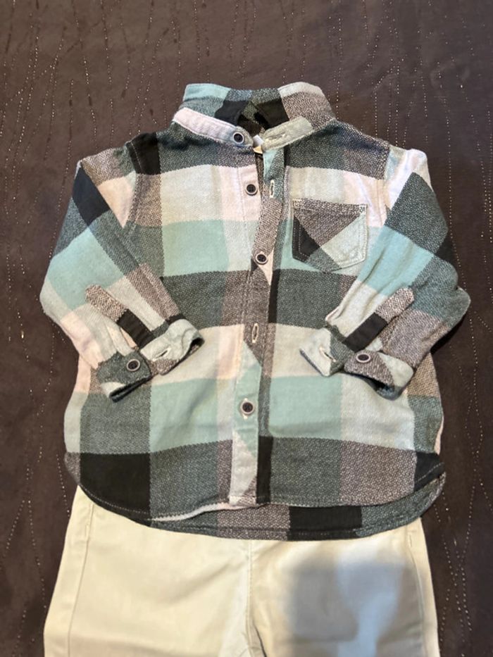 Ensemble bébé chemise et pantalon style chino Pantalon kiabi vert bleu 12 m Chemise à carreaux orchestra 12m #tatouwbébégarçon12mois