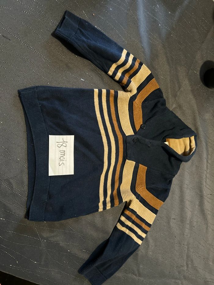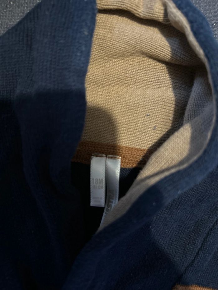 Pull hiver petit col bleu marine et rayure marron beige #tatouwbebegarcon18mois