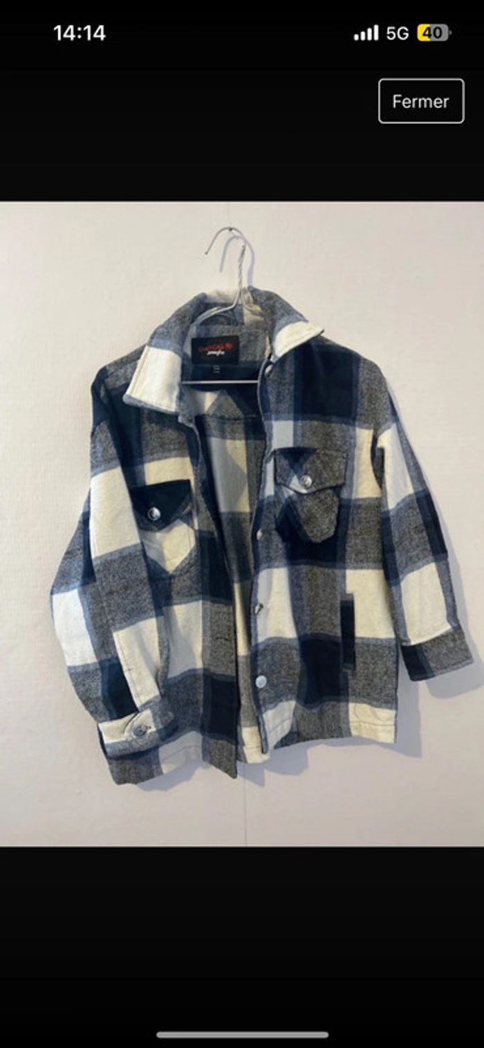 Veste surchemise à carreaux Très bonne état. Très chaude Noir blanc bleu #tatouwfemme32