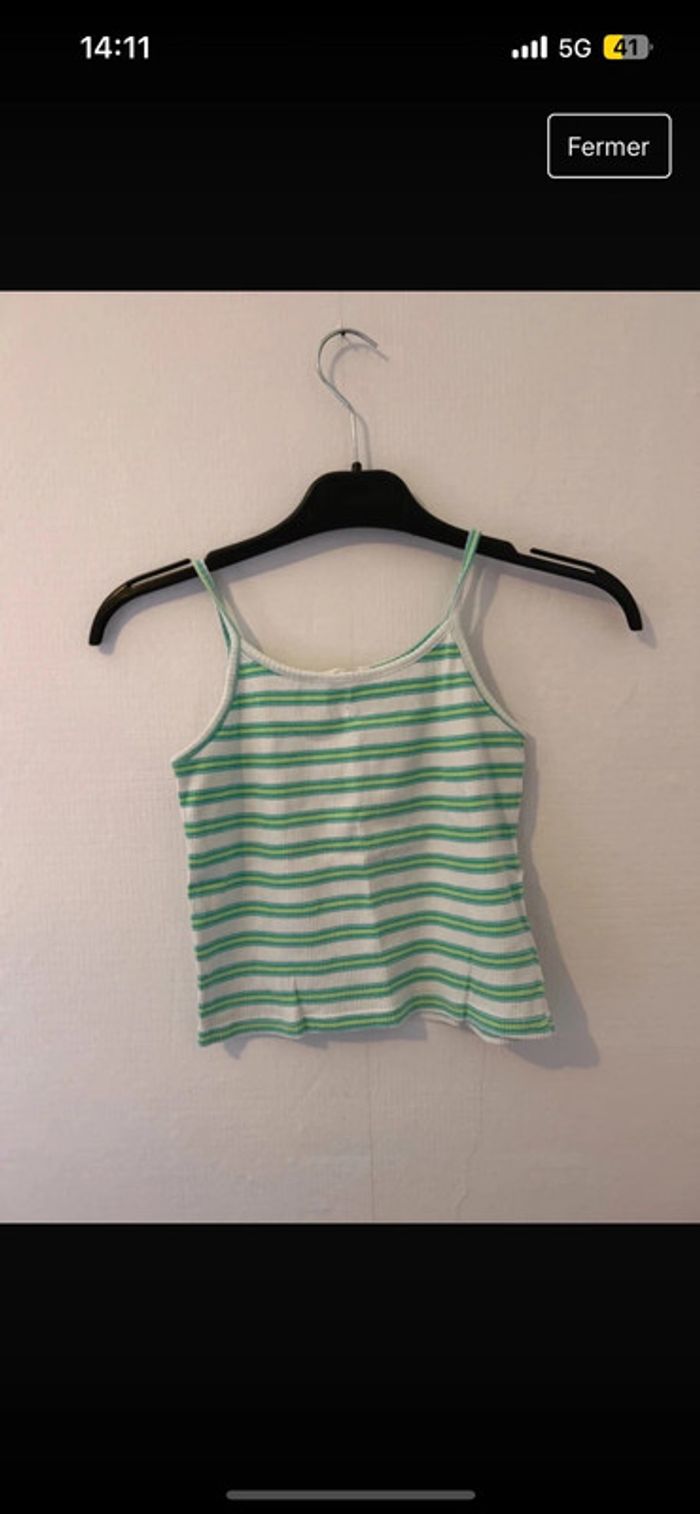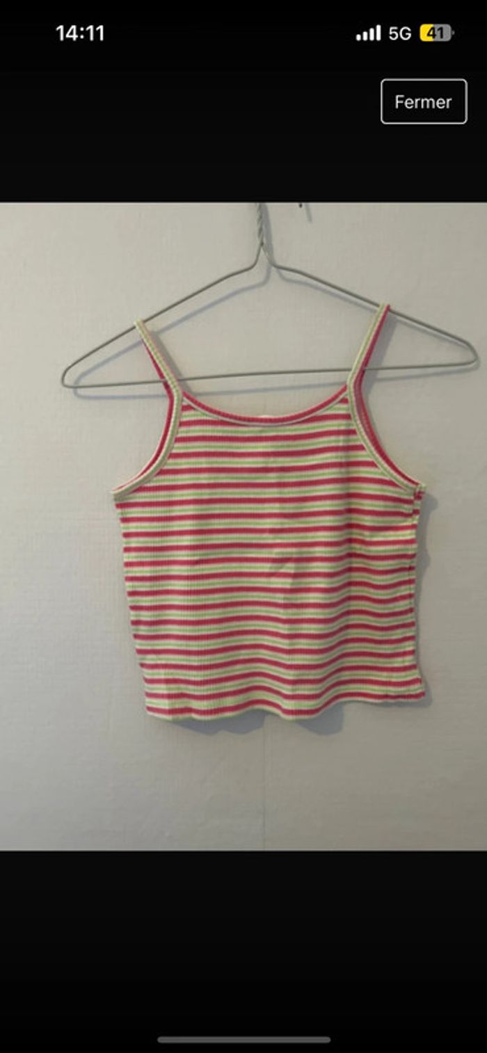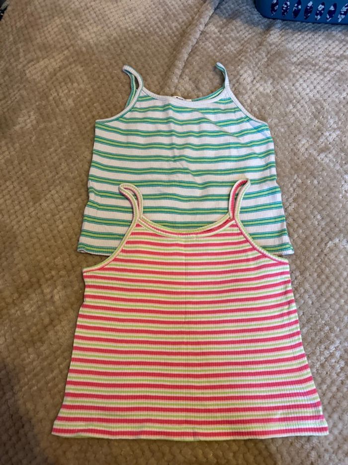 Lot débardeur rayé Court et moulant Vert rose blanc #tatouwfille12ans