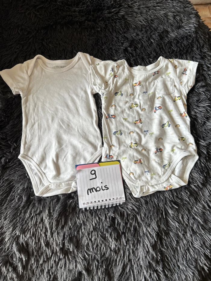 Lot de 2 body manches courtes 9m Le blanc orchestra Le blanc à motifs bout’chou bio #tatouwbebegarcon9mois
