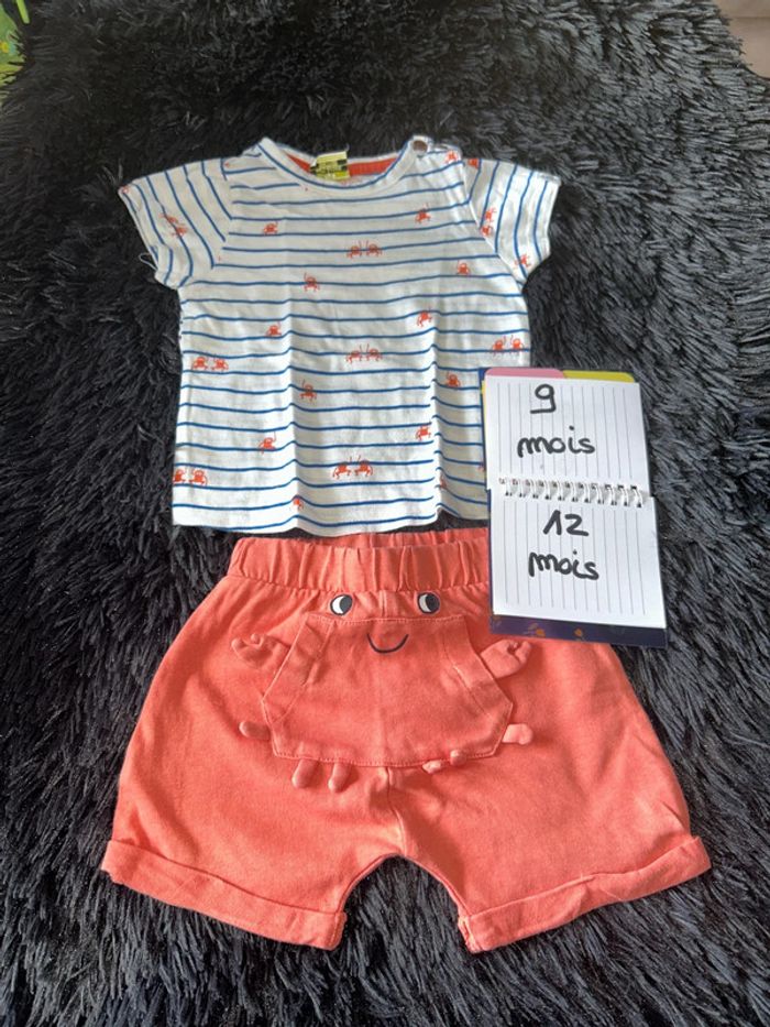 T-shirt rayé tape à l’œil 9m Short orange corail orchestra 12m #tatouwbebegarcon9mois #tatouwbébégarçon12mois