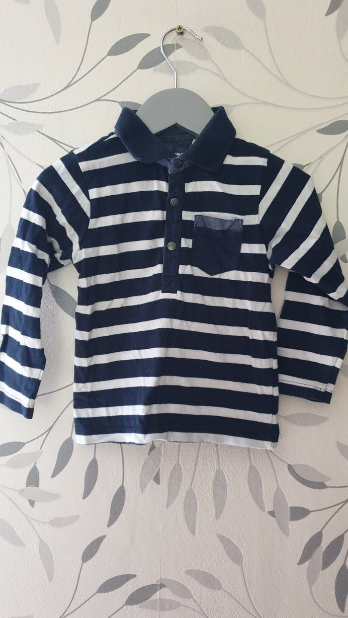 Tee-shirt manche longue bleu marine et blanc taille 24mois marque orchestra très bonne état