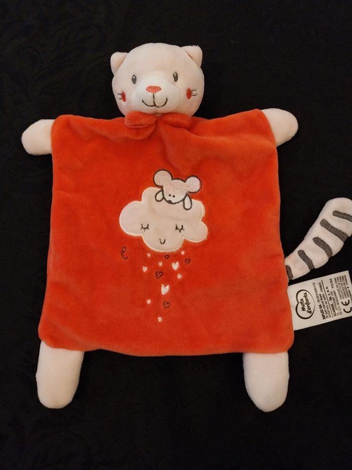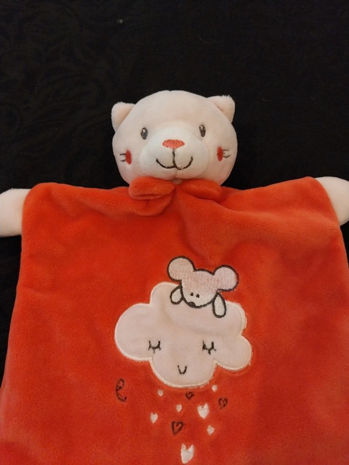 Doudou chat mots d'enfants Rose framboise et rose pâle Nuage et souris brodés