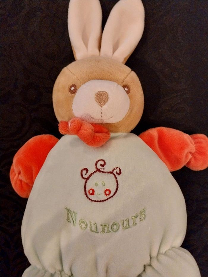 Doudou peluche lapin nounours vert rouge Fillette brodée