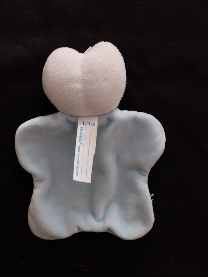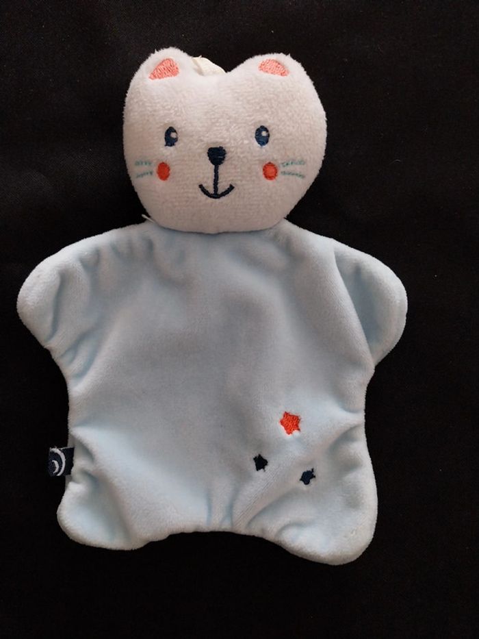 Mini doudou chat sucre d'orge Blanc bleu ciel etoiles brodées