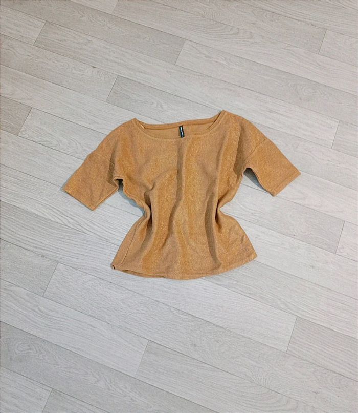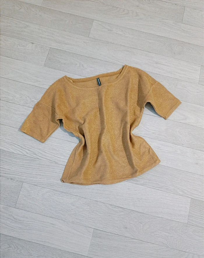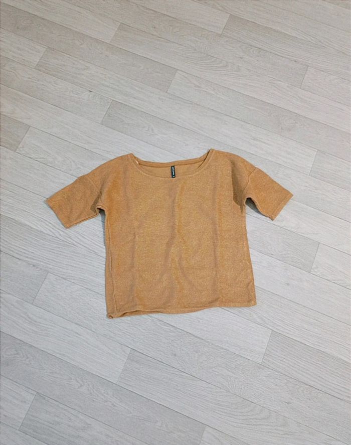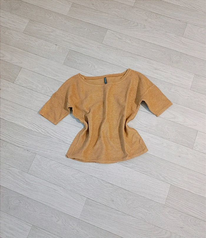 ✨ Très joli haut femme manches courtes, couleur doré/or avec paillettes dorées, parfait pour les fêtes de fin d'année 🎀