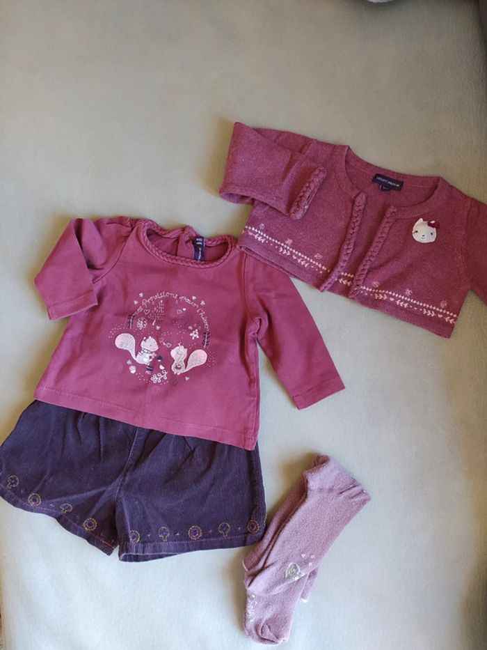 Ensemble bébé fille Sergent Major composé : - d'un T-shirt ML col fantaisi - d'un short en velours. - d'un boléro assorti - d'un collant Le tout est en 3 mois - très bon état Mon dressing est rangé par taille. Pour voir tous mes vêtements et accessoires de 3 à 6 mois, cliquez sur les liens #celine_yiyi_3m #celine_yiyi_6m ATTENTION pour que les liens fonctionnent, pensez à supprimer vos filtres et recherches 😊