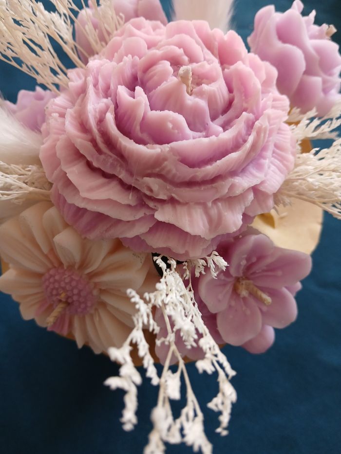 Bouquet fleuri en cire et bougies - photo numéro 1