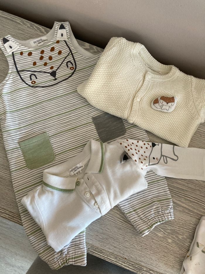 Ensemble du pareil au même comprenant le body/polo, la salopette et le gilet. Comme neuf en taille 3 mois. Le gilet n’a pas été porté
