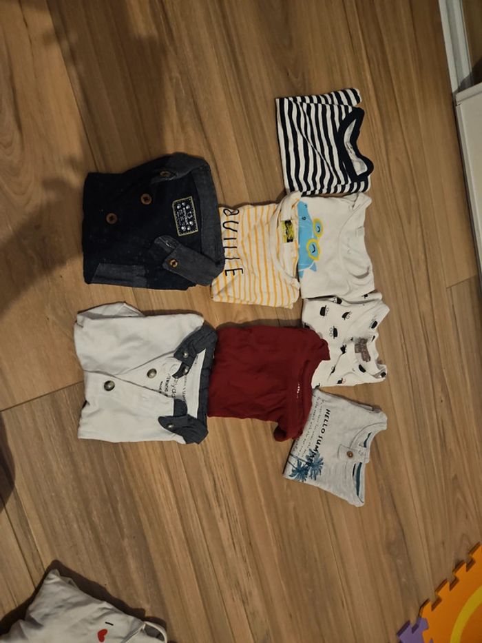 Les 4 du haut sont des débardeurs Les 2 du milieu sont des t shirt manches courtes Les 2 du bas des polo manches courtes Taille 12mois