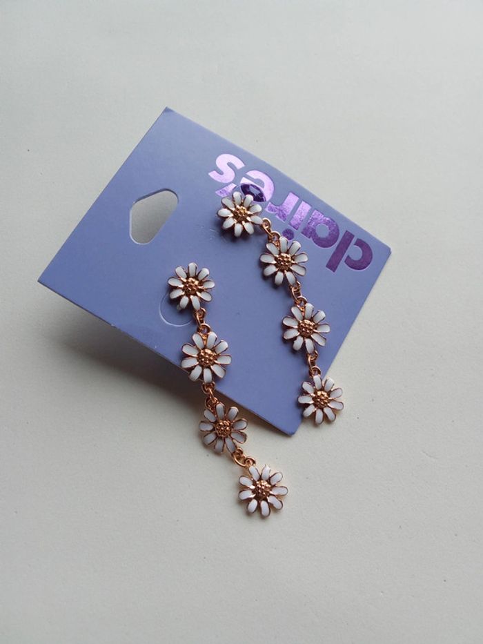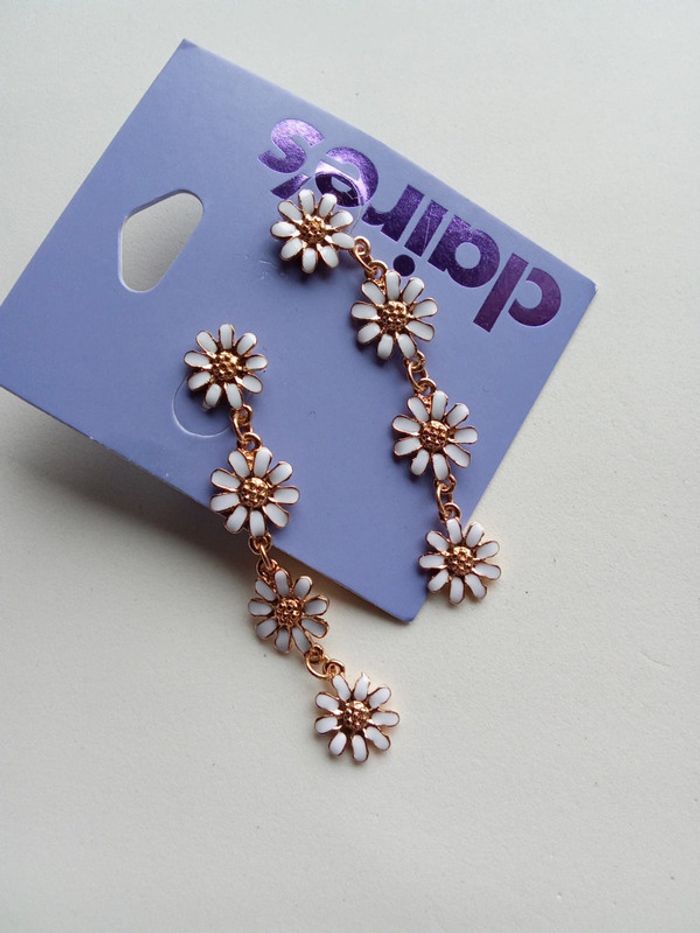 Boucles d'oreilles fleurs - Claire's - Neuf #neuf #new #nuevo #claires #boucles #doreilles #boucledoreilles #bijou #fleur #flor #flower #marguerite #paquerette #camomila #primavera #fantaisie #earrings #pendientes #aretes #pendantes #longues #cadeau #gift #regalo #hippie #mariage #boda #wedding #summer #avecetiquette #dafnezneuf #dafnezbijou #dafnezado
