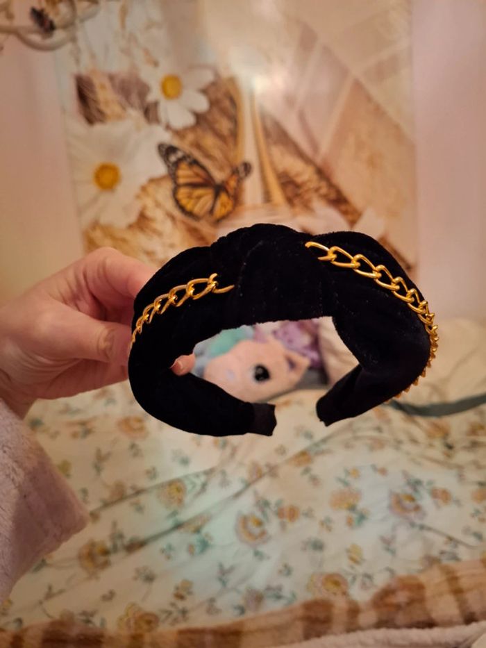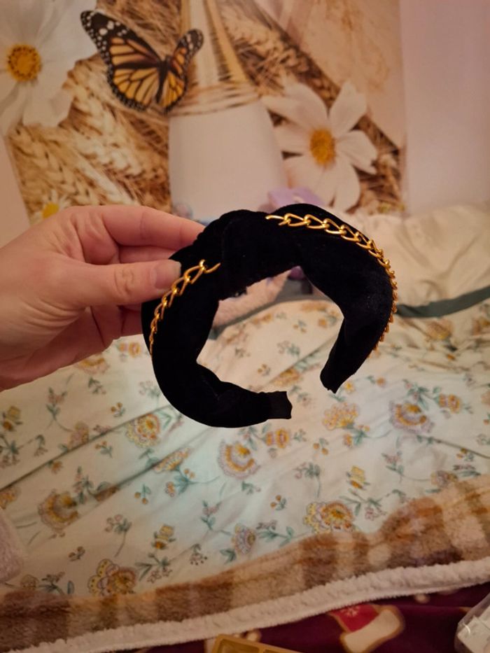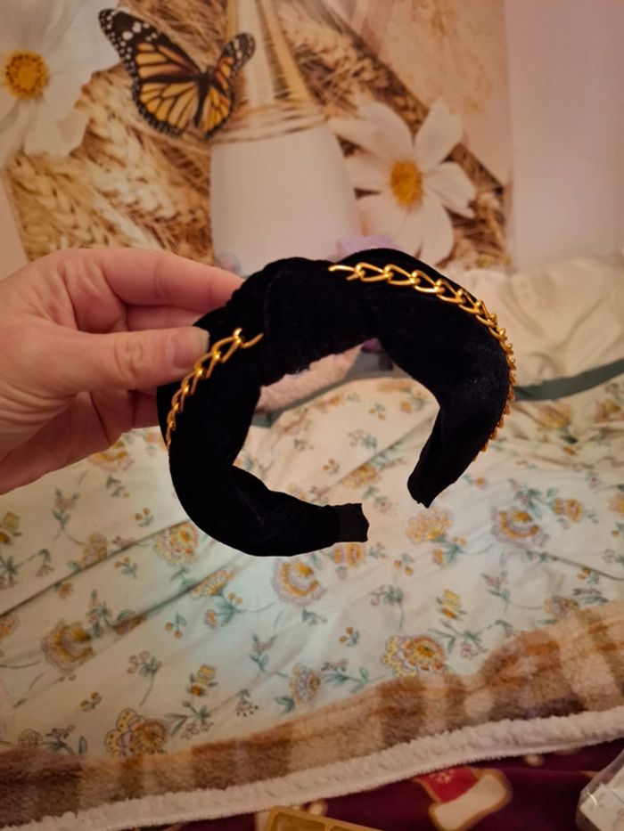 Serre tête en velour noir avec chaine dorée neuf jamais porté bandeau sert tête noir velours Accessoire cheveux coiffure nœud et maille doré. #serretete #bandeau #serretetenoir #serretetevelours #velours #accessoires #women #femme #cheveux #hair #hairaccessories #serretetefemme #serreteteenvelours