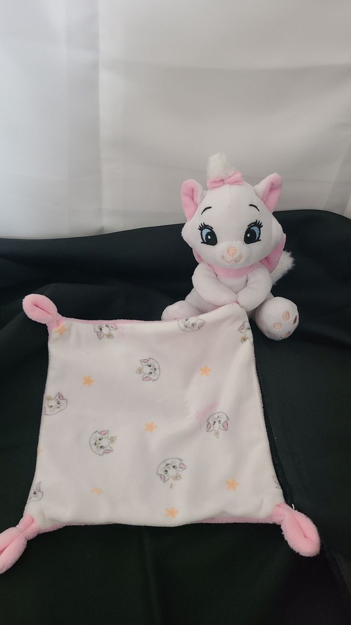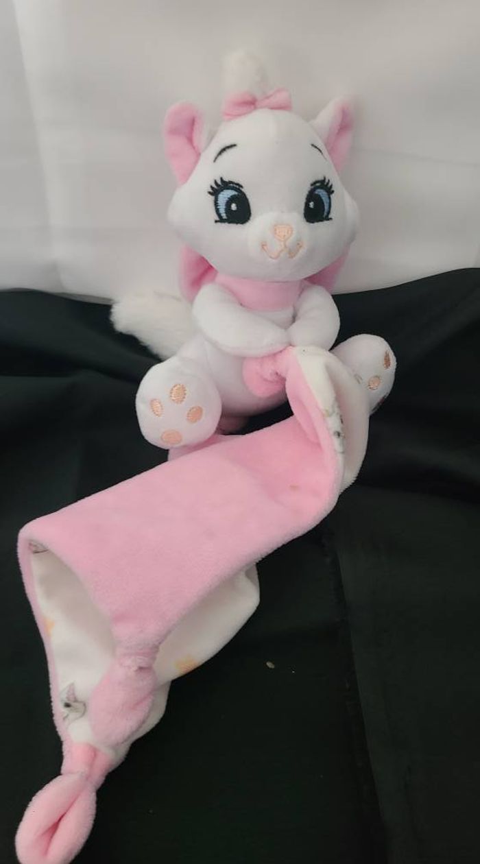 Doudou Chat Marie blanc rose mouchoir têtes et fleurs DISNEY BABY - photo numéro 1