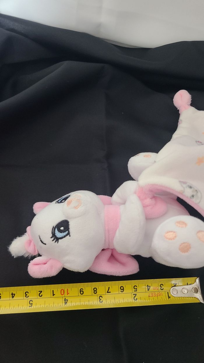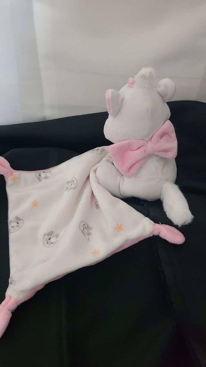 Doudou Chat Marie blanc rose mouchoir têtes et fleurs DISNEY BABY - photo numéro 5