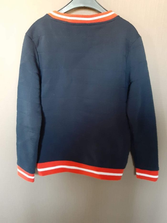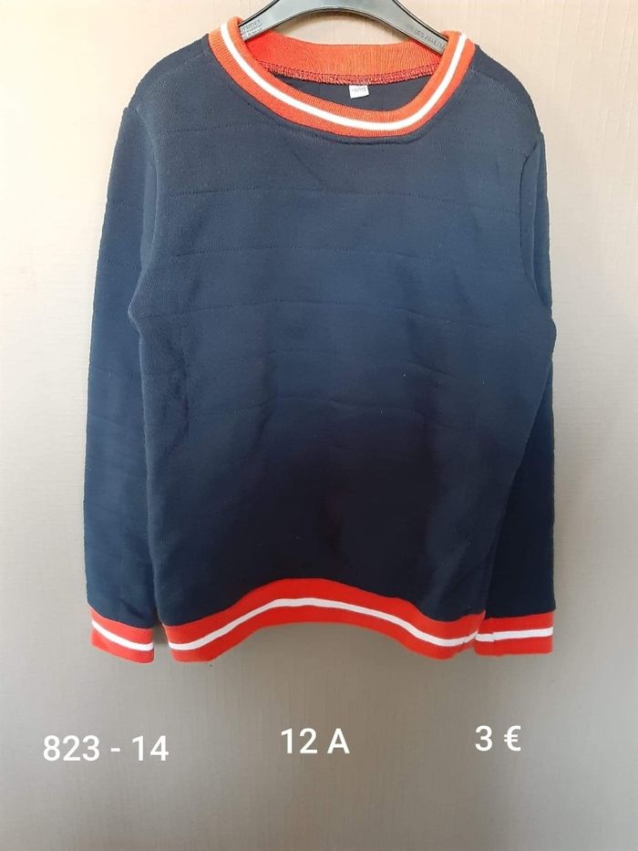 Sweat marine avec un peu de orange et de blanc Bon état, seconde main ✋️ ni tâche ni trou Taille 12 ans Prix 3 €
