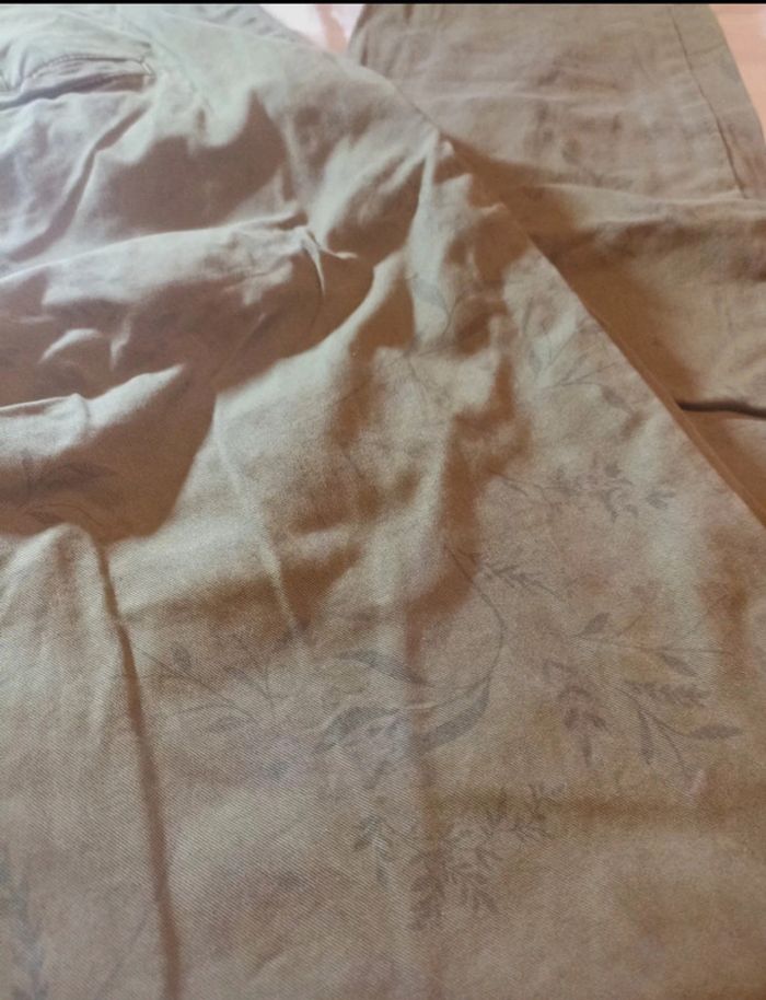 Bonjour. Pantalon coupe droite kaki et fleuris. Taille 38. #vetementfemmetaillem38ventedu29