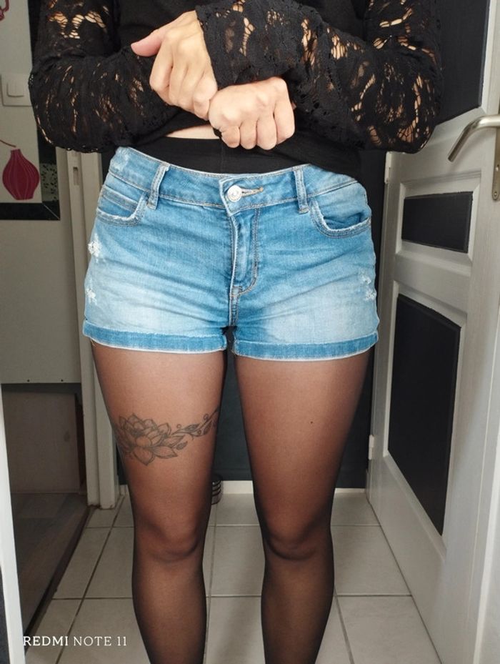 Bonjour. Short en jeans taille baille taille 36. #vetementfemmetailles36ventedu29