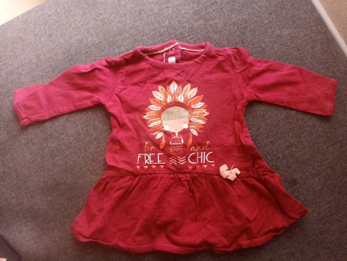 Bonjour. Tee shirt bordeaux donc plus foncé que le photo 3mois. Boutons pression au dos. #vetementbebefille3moisventedu29