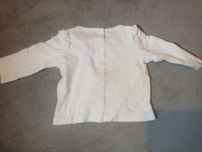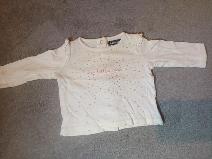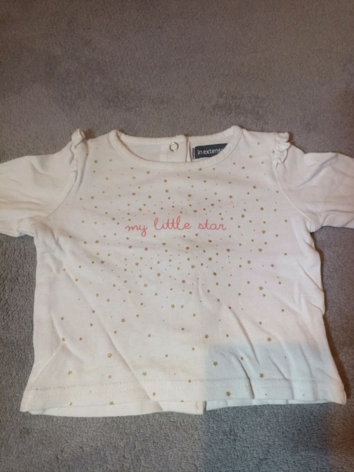 Bonjour. Tee shirt longue manche blanc a étoile doré. Boutons pression au dos. 62cm. #vetementbebefille3moisventedu29