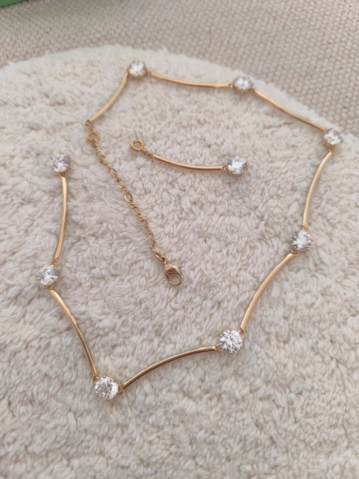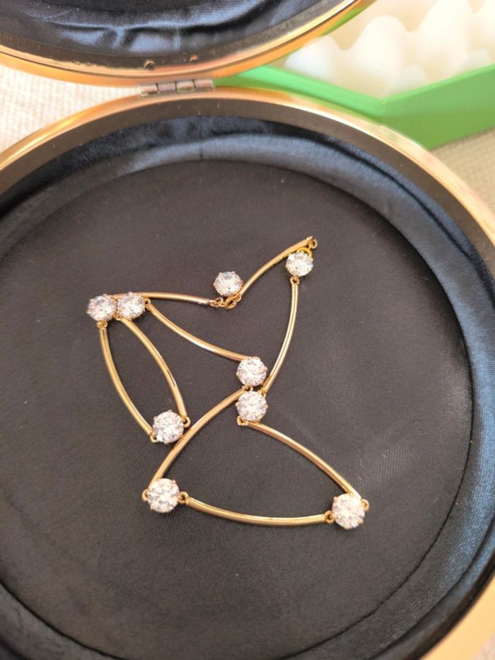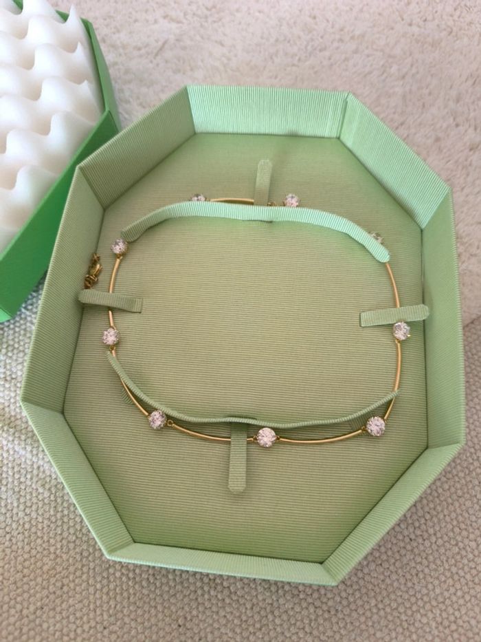 📝 Détails supplémentaires : Rehaussé de pierres taille brillant serties griffes, ce collier vous rappellera la beauté spectaculaire d'un ciel étoilé au quotidien. Les cristaux évoquant le solitaire classique sont reliés par de fins maillons en placage de ton or, qui suivent avec fluidité les mouvements du corps. Portez-le seul ou avec d'autres modèles de la famille Constella pour un look éblouissant en journée ou en soirée. Ce collier fait partie de la famille Constella et a été pensé par la directrice de création Giovanna Engelbert pour la Collection