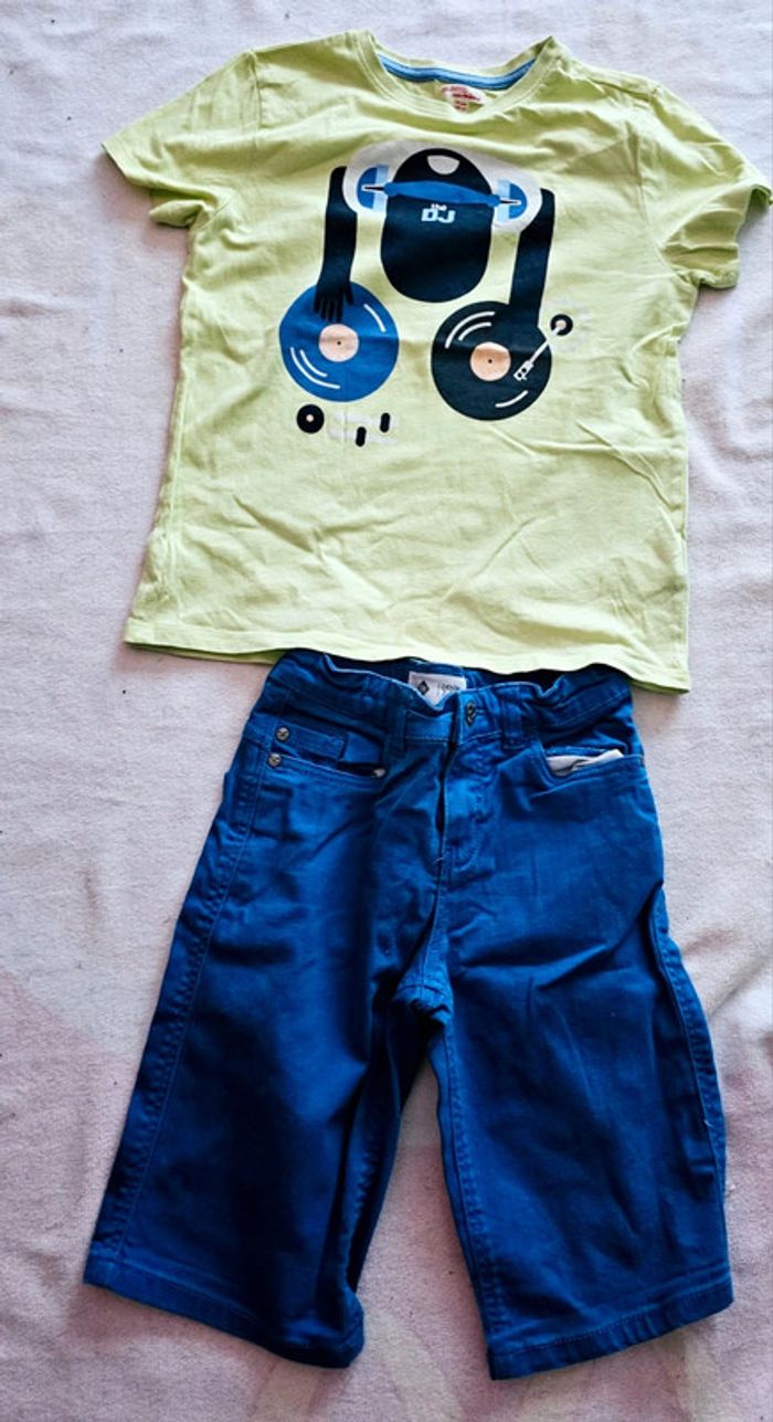 joli ensemble 📌Marque :dpam Taille shirt tex short 📌Taille :10 ans t shirt 8 ans short 📌Motif : graphisme et logos/ uni 📌Coloris :bleu vert Pour voir tout mon 10 ans tapez dans la barre de recherche #10ansgarçonlili29217