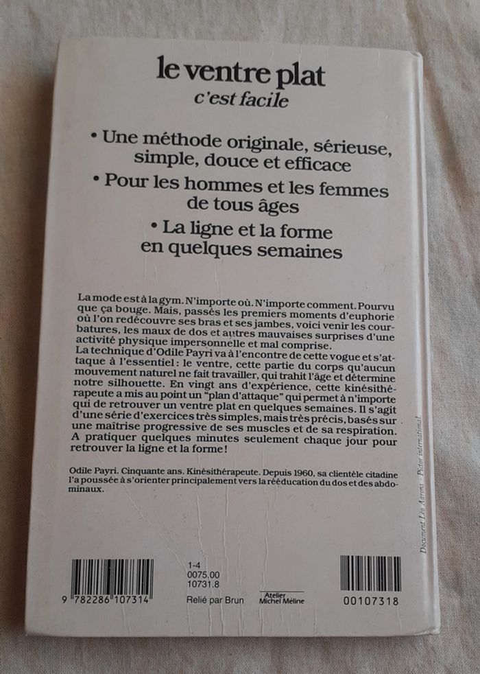 A lire avant l'été !!! Une méthode originale, sérieuse, simple, douce et efficace pour les hommes et les femmes de tous âges. Retrouvez la ligne et la forme en quelques minutes par jour. La couverture a un peu vieilli mais les pages à l'intérieur sont en très bon état. ★☆**☆**☆**☆**☆**☆**☆**☆**☆**☆★ Il vous est sûrement possible de bénéficier de frais de port à prix réduits (𝘴𝘶𝘳 𝘒𝘪𝘢𝘣𝘪𝘚𝘦𝘤𝘰𝘯𝘥𝘦𝘔𝘢𝘪𝘯) : 1,99 € pour 1 article ou 0,99€ pour un lot. Me contacter avant tout achat 😉 ★☆**☆**☆**☆**☆**☆**☆**☆**☆**☆★ #livre_martine66500 #ventreplat #soin_martine66500 ★☆**☆**☆**☆**☆**☆**☆**☆**☆**☆★ 🛍🛍 Les réductions sur les lots sont activées. N'hésitez donc pas à faire une petite visite dans mon dressing. Et, si vous avez besoin de plus d'informations, vous pouvez me contacter. Je réponds en général rapidement !