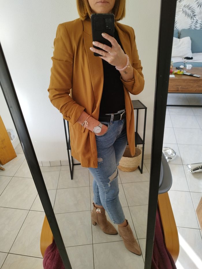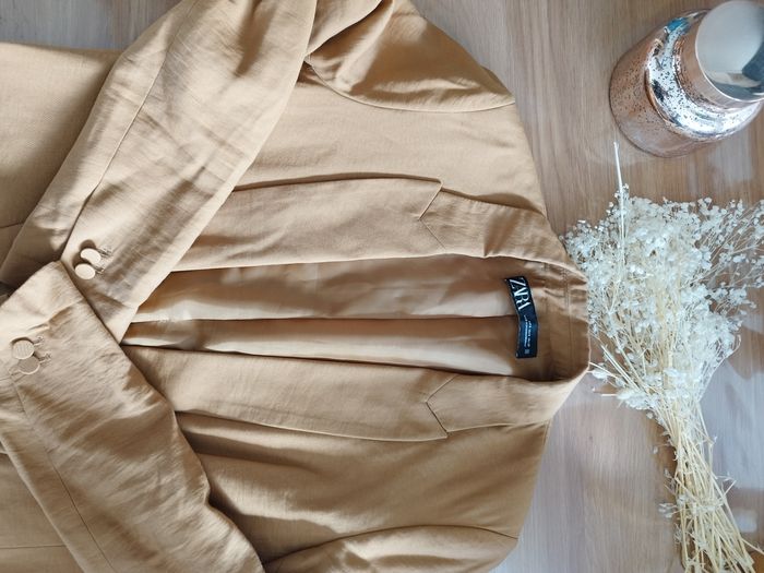 🫧 A vendre blazer camel 🫧 Zara. Taille S. Porté deux fois. Je n'ai pas l'occasion de le porter alors je le vends pour une nouvelle vie 🌸🌸 Disponible pour en discuter 🙋🏼‍♀️