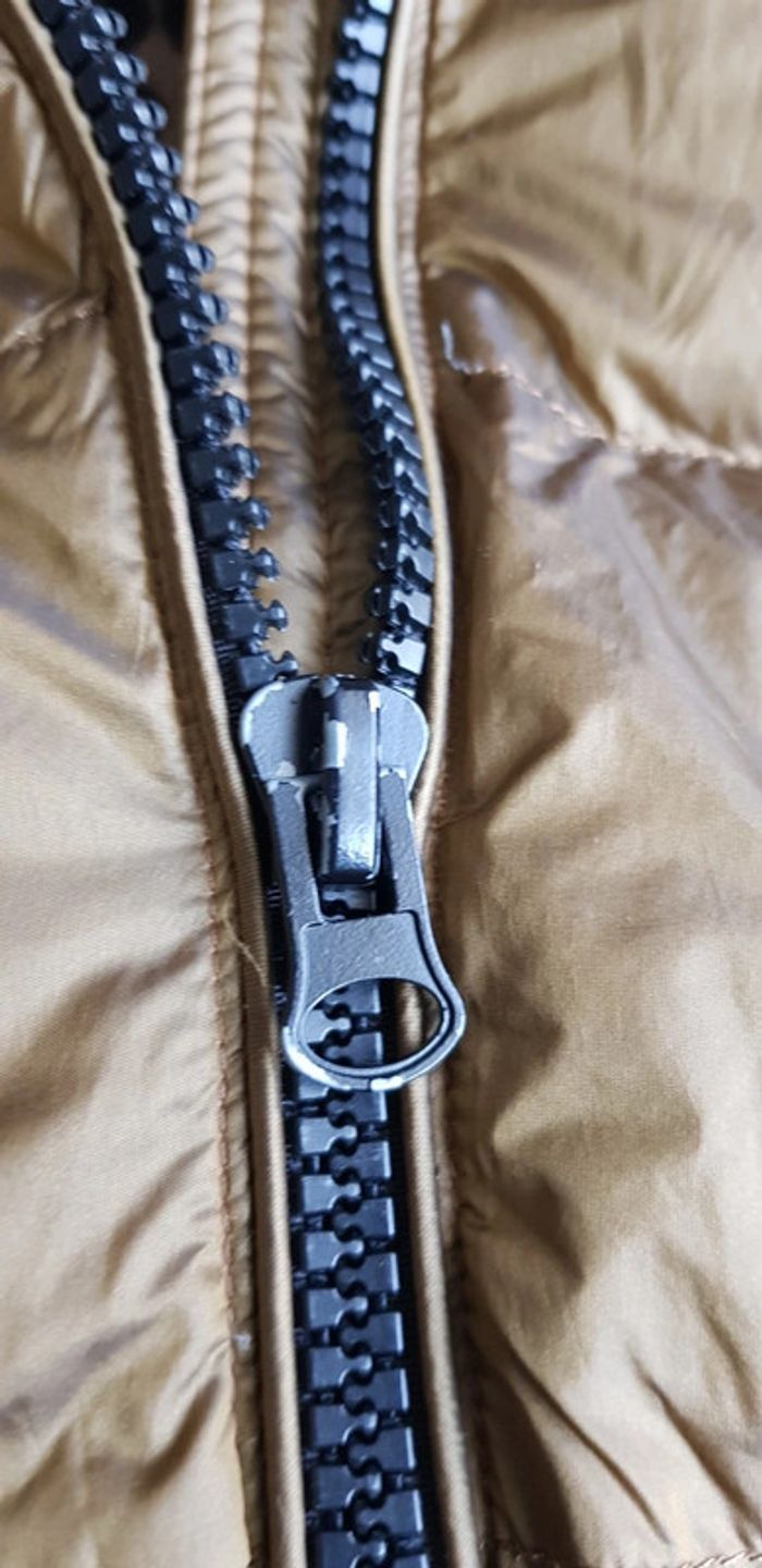 Doudoune fine à capuche de couleur bronze - T. 40 - Seul la tirette est un peu écaillée mais reste en TRÈS BON ÉTAT.