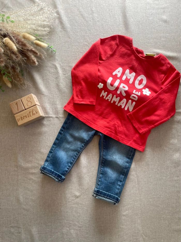 #les_ptites_pepites_fille_18mois 📋Ensemble composé d'un jean et d'un haut à manches longues 📏 18 mois 🛍️ Tape à l'oeil 📌 Très bon état 📦 Les colis sont déposés sous 24h du lundi au vendredi ℹ️ Suivez nous sur Instagram : les_ptites_pepites_ Ou TikTok : les_ptites_pepites_ Un code promo vous sera envoyé dans votre messagerie ✨ 📣 Dressing entièrement trié, retrouvez toutes les catégories dans « à propos »