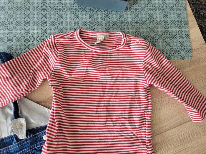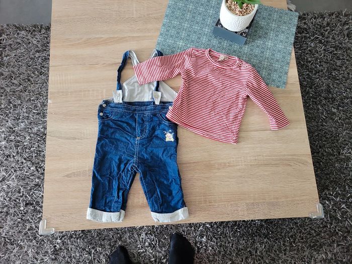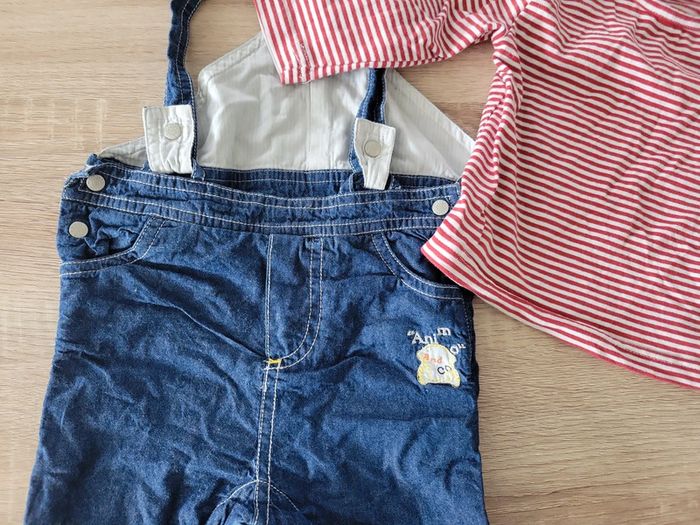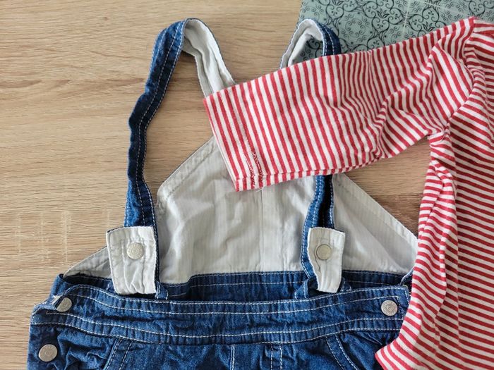 Porté quelques fois. Salopette avec fermeture à pressions de canary baby Marinière avec 2 pressions sur le haut de l'épaule de la boîte à malices