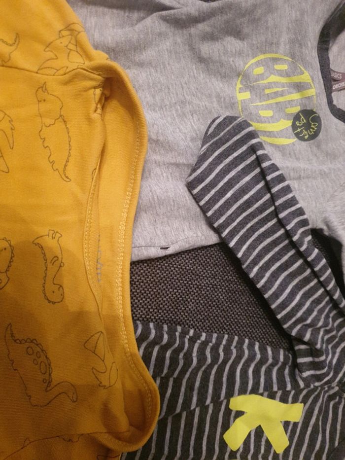 Bon état sauf un trou fait en coupant l'étiquette sur l'un 9mois 71cm 2 gris orchestra Jaune marque extenso